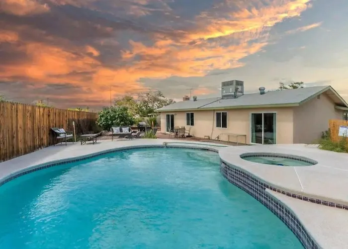 Cette villa de 3 chambres dispose d'une cuisine équipée où vous pourrez trouver une cafétière/théière électrique, un réfrigérateur et de la verrerie. McDonald's, proposant une large gamme de repas, se trouvent à environ 14 minutes à pied. L'aéroport international McCarran de Las Vegas est accessible en 15 minutes en voiture depuis le gîte.